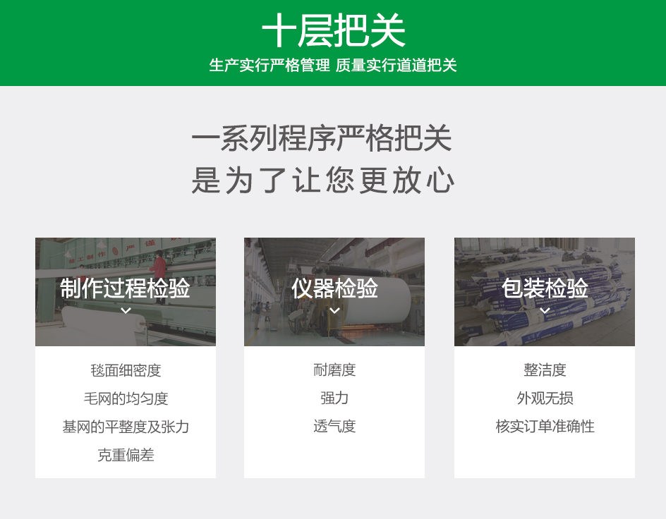 | 特點(diǎn): | 毯面平整,強(qiáng)力大、抗壓性能強(qiáng),脫水性好,抗污、耐磨性能高,尺寸穩(wěn)定,延長(zhǎng)使用壽命。 |